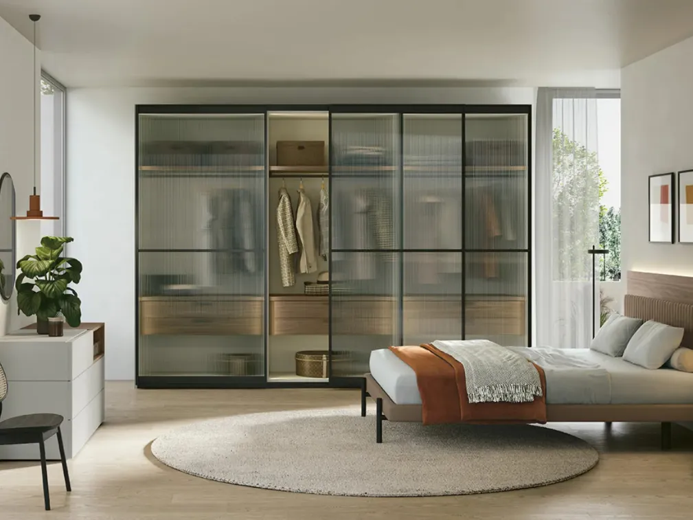 Se cerchi armadi a muro con ante scorrevoli, clicca e scopri l'armadio Double scorrevole di Dielle Modus in vetro.