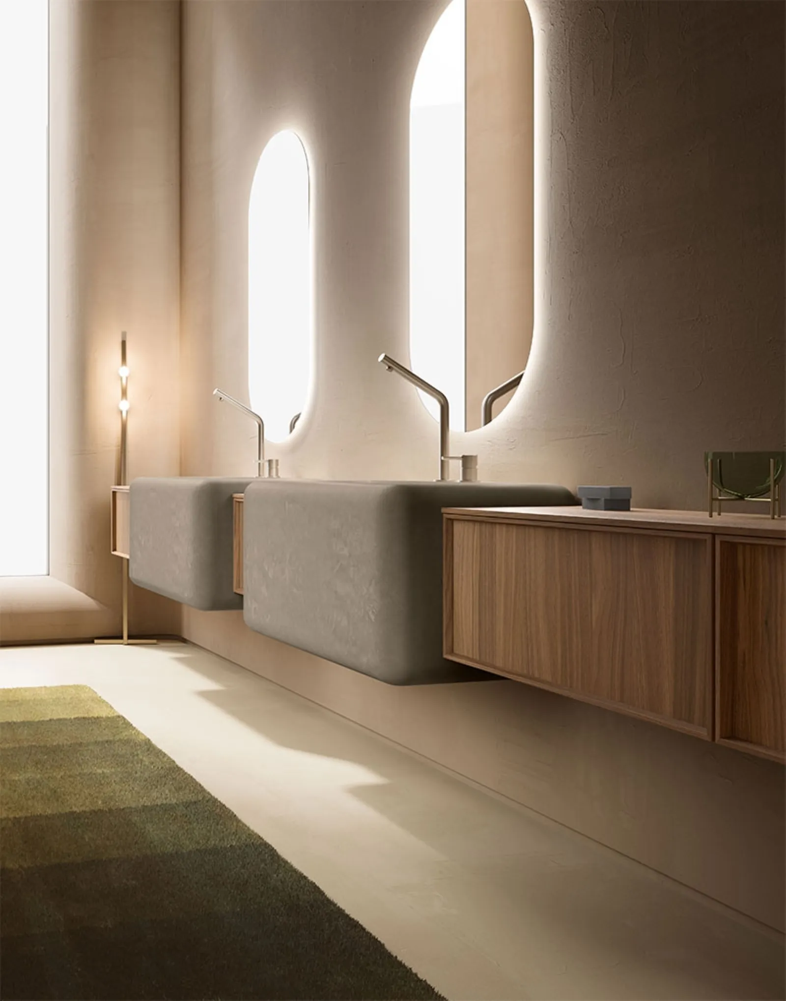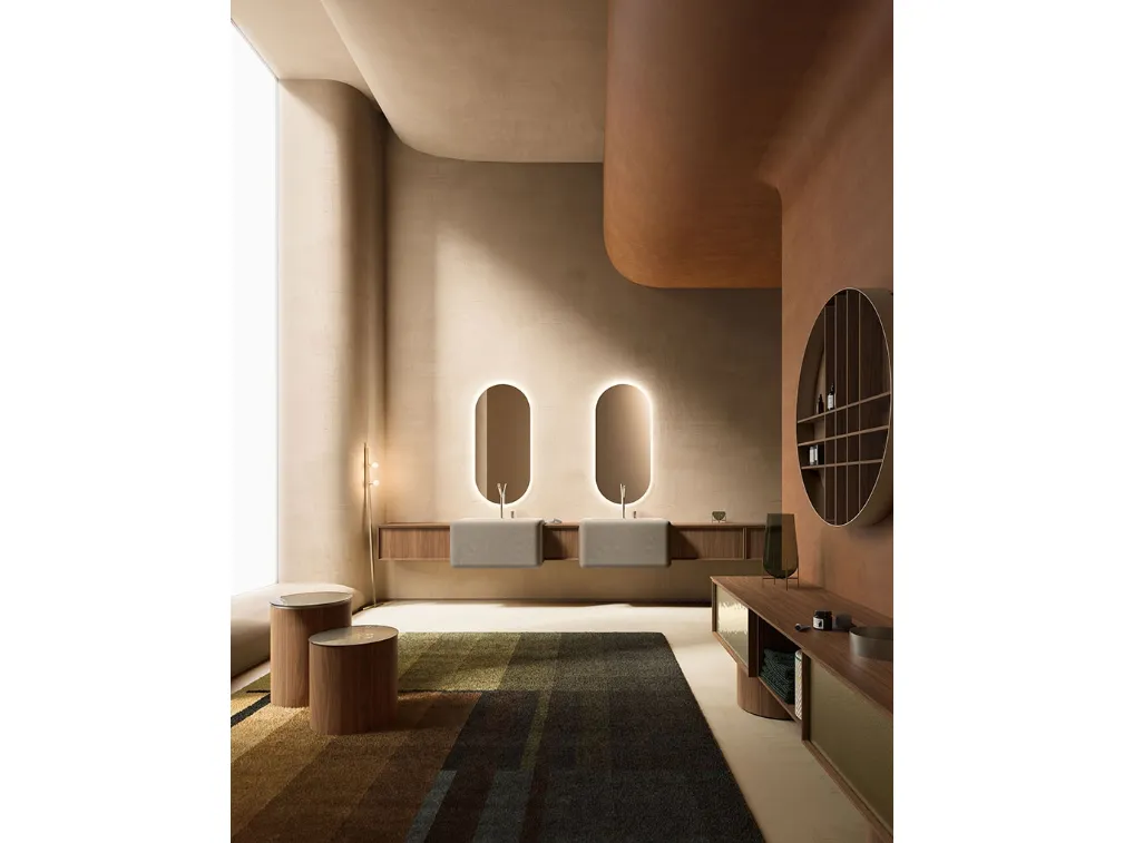 mobili bagno sospesi Des Evolution Caramel 02 di Cerasa: scopri l'Arredo Bagno in legno design e arreda il tuo bagno.