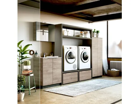Puntotre progetta soluzioni per l’Arredo Bagno moderno con mobili bagno per lavanderia che uniscono linee ben studiate e grande ergonomia, come questo interno chiede.