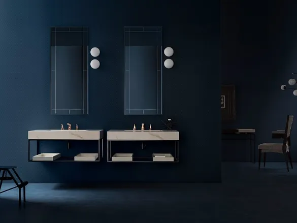 Mobili bagno sospesi Maori con struttura sospesa aperta in metallo Nero Lucido di Cerasa: scopri l'Arredo Bagno in metallo moderno e arreda il tuo bagno.