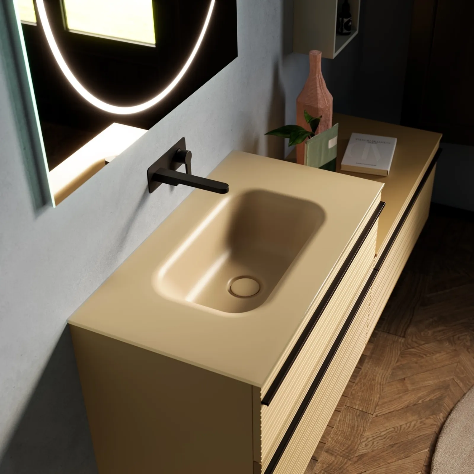 Arreda il bagno di casa moderno ottimamente con Reverso 13, mobili bagno sospesi e oggetti in polimerico di Puntotre.
