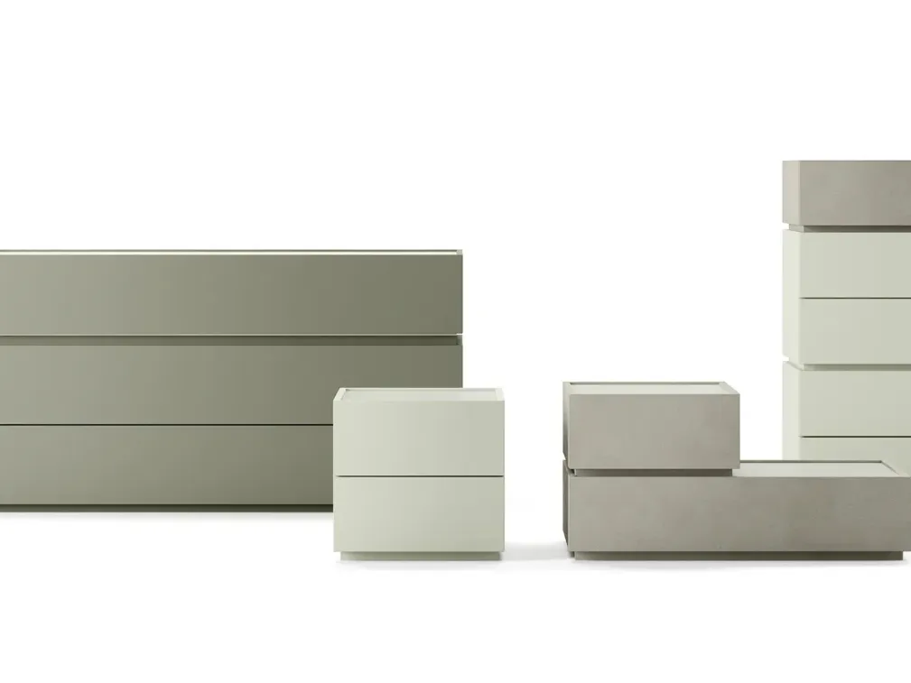 Vuoi progettare la camera da letto con Comodini e cassettiere di Dielle Modus? Eccoti il modello My Box Gruppo Notte in melaminico per spazi moderni.