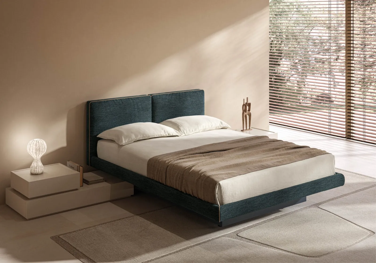 Vuoi ridefinire la zona notte? Eccoti il letto in tessuto Azzurra di Tagliabue Mobili per spazi moderni.