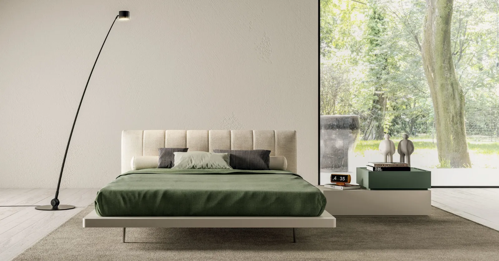 Il letto Alba in tessuto, tra i modelli imbottiti matrimoniali design di Tagliabue Mobili, è ideale per garantirti il relax totale.