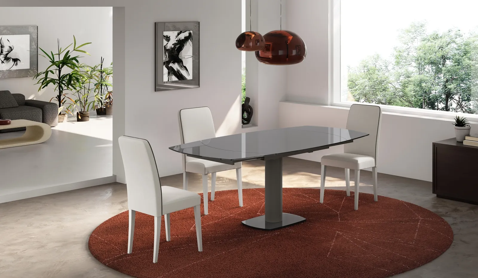 Vuoi valorizzare spazi moderni? Scopri di più sui tavoli moderni allungabili: il modello da pranzo Kyoto Glass ti attende.