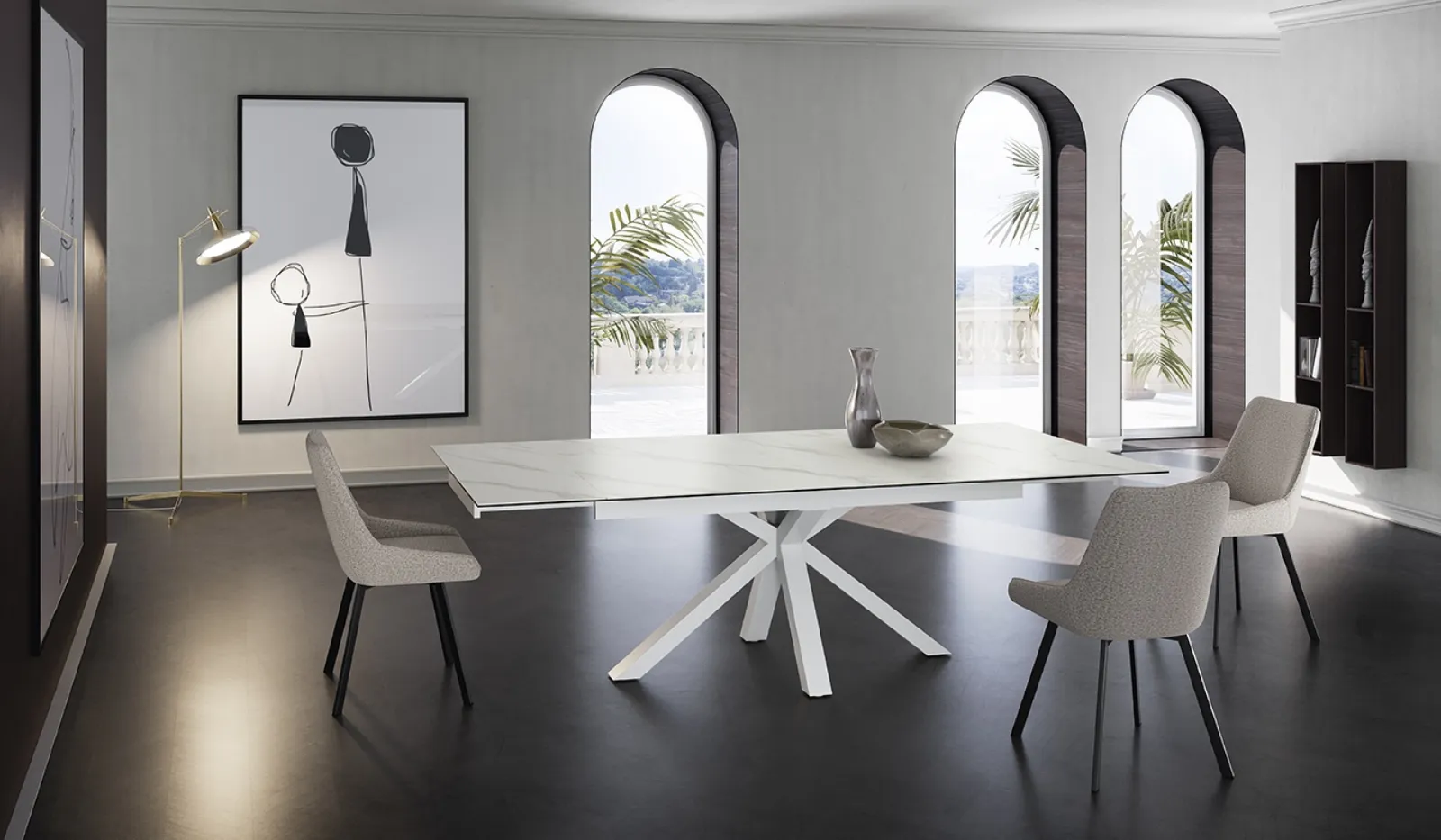 Da noi ti aspetta una ricca gamma di Tavoli allungabili dei migliori produttori, tra cui anche il modello da pranzo presente in foto. Se vuoi rinnovare i mobili moderni che hai in casa o comprarli ex novo, da noi potrai toccare con mano le soluzioni più belle in commercio. Durante l'acquisto del tavolo giusto per te è necessario valutare misure, linee, finiture e stile, per organizzare al meglio lo spazio con un'ottima estetica. Opta per i mobili ed elementi accessori in ceramica dei migliori produttori per completare con praticità i tuoi spazi senza mai sacrificare il valore estetico.